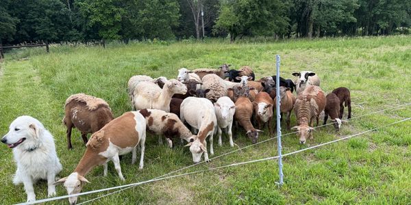 Osage, a Maremma livestock guardian dog, will be a year old April 2025. She's still has puppy antics, but is learning her job and protecting her sheep.